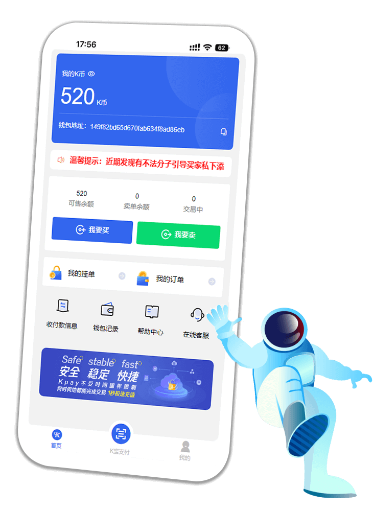 友情提示:亲爱的K宝用户没有收到款项,切记不要打币 如有操作失误,损失自行承担